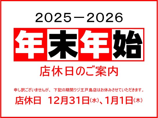 クジ王戸島店年末年始店休日のご案内